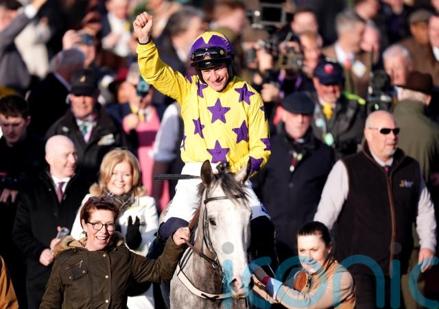 Taking the lead on the run to the final fence, the eight-year-old stumbled on the landing side but it made no difference as he galloped to a 10-length success at odds of 5-2 over the fast-finishing Libberty Hunter, who picked up the pieces for second at 50-1 ahead of L’Eau Du Sud.