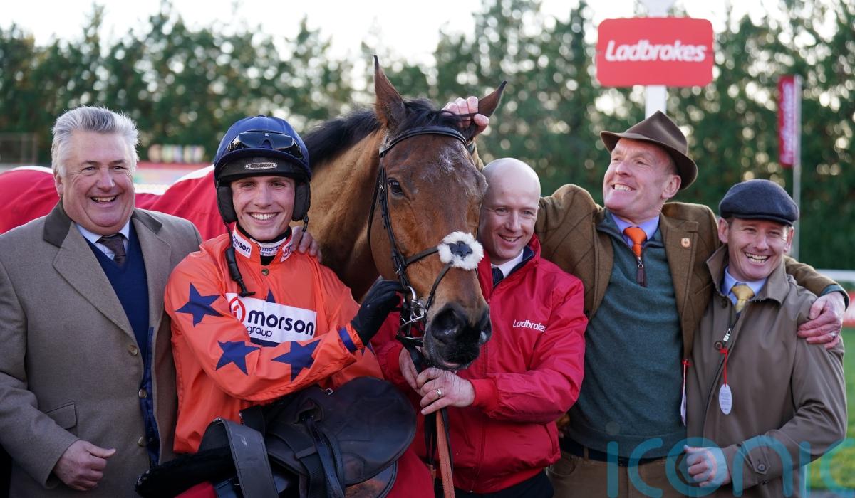 Harry Cobden was keen to give his mount space on the outside and it was not until they turned into the straight that he began to move up alongside L’Homme Presse, with two of last season’s leading novices fighting out the finish.