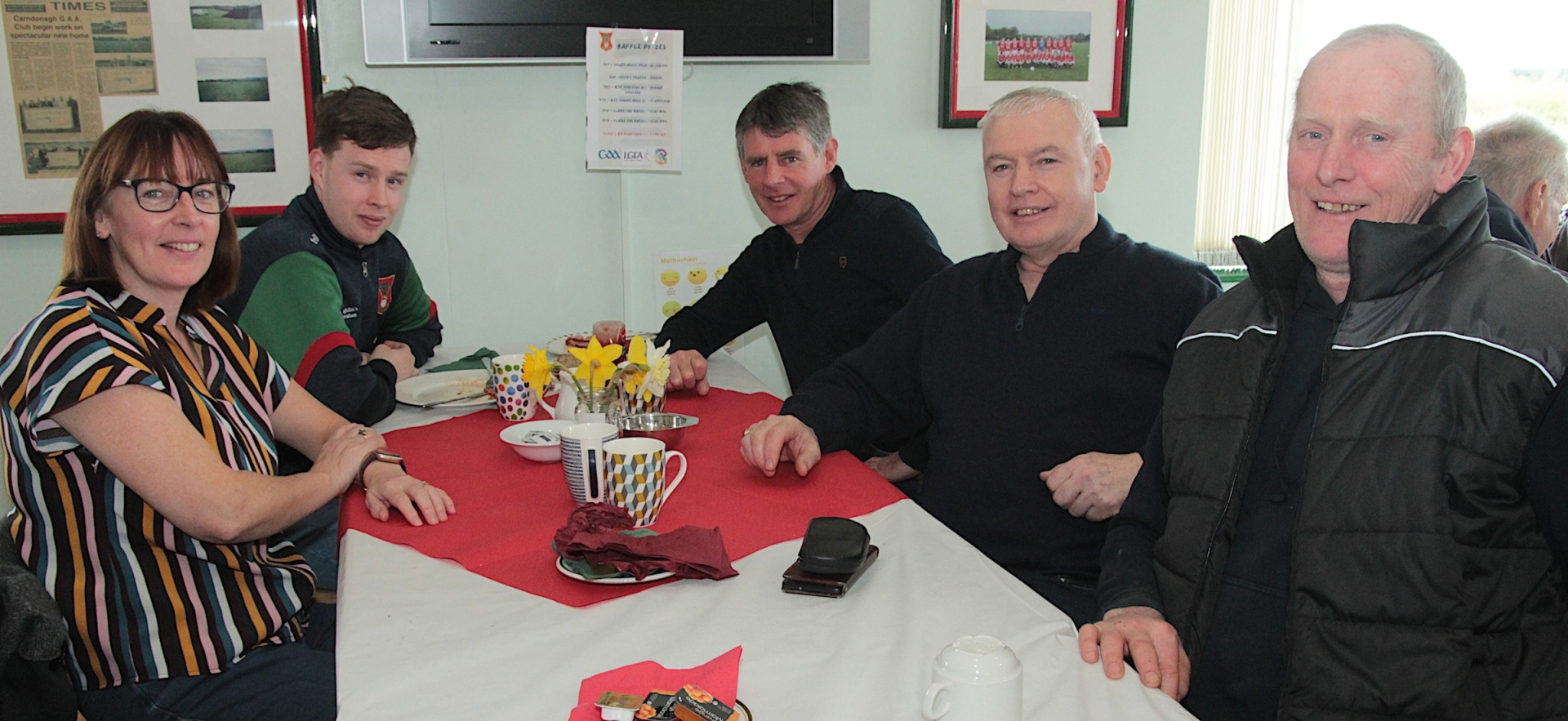 Mary Cox, left and Aiden Ruddy, right, having breakfast with Danny, Paddy and Sean Monagle