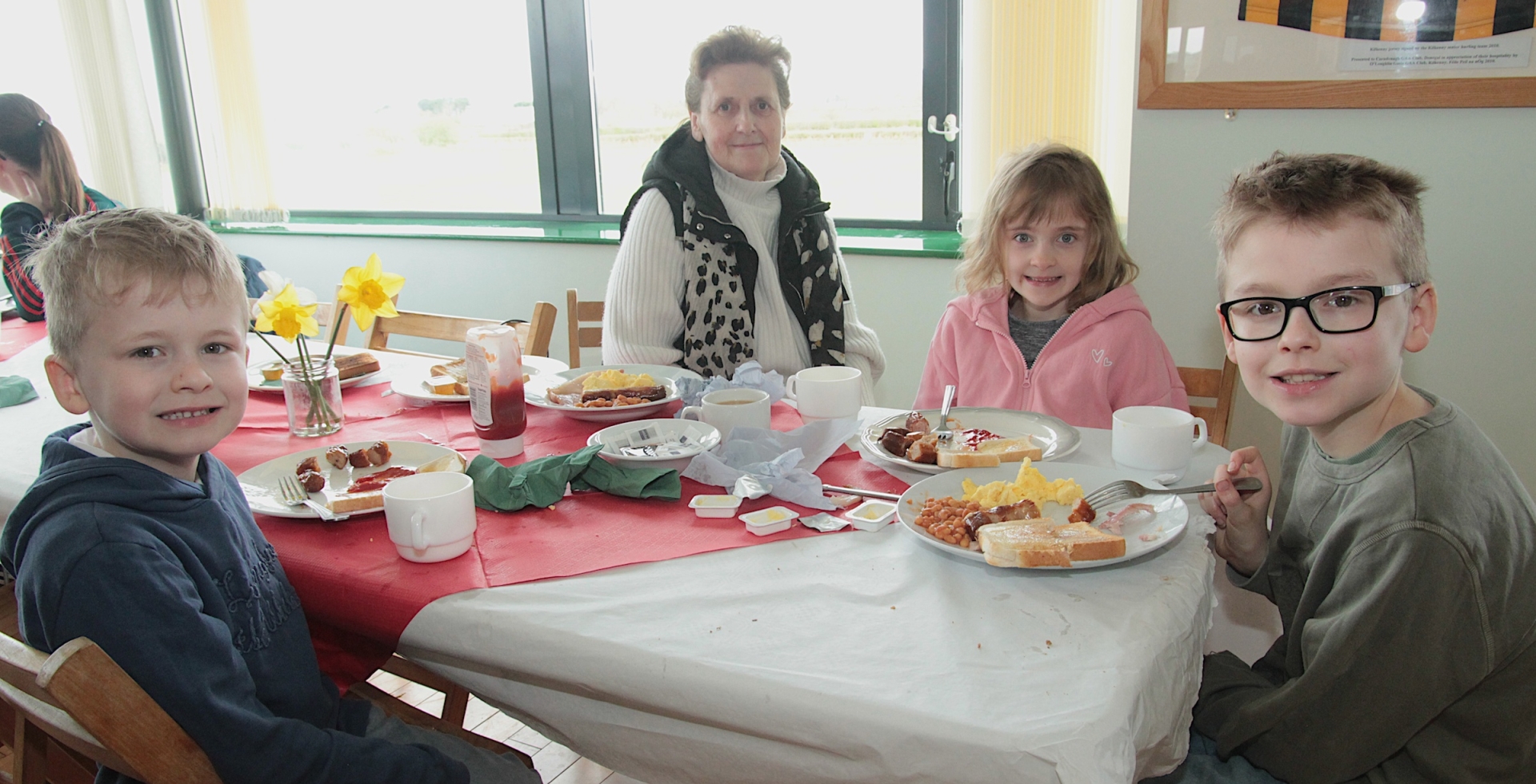 Cillian, Liam and Niamh O'Malley having breakfast with their granny Crampsey