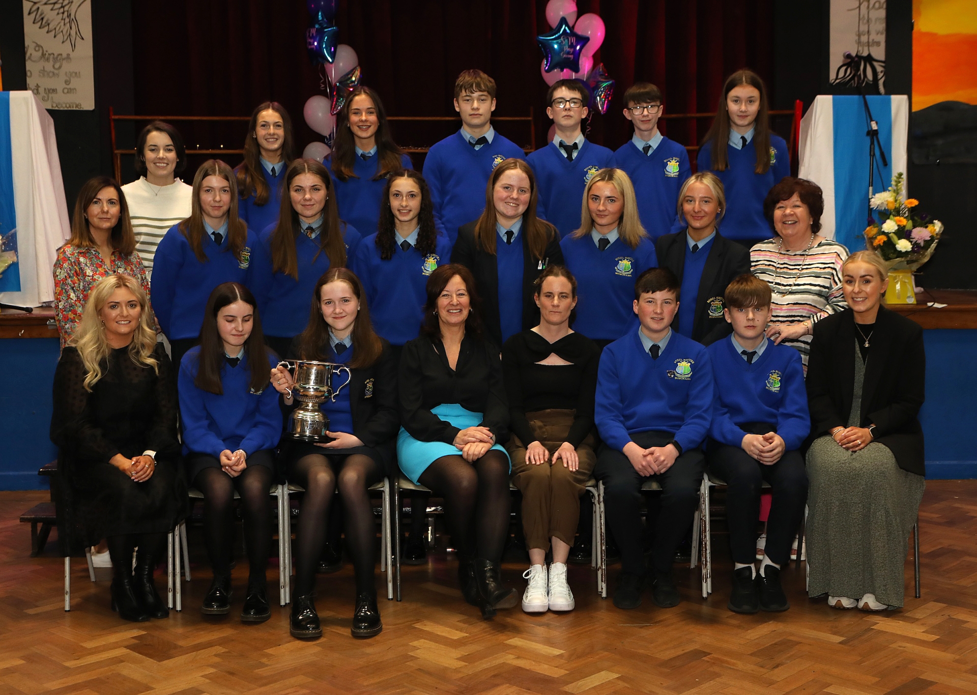 2B charities cup award winners pictured with Ms Annette McGonagle (seated centre) and Jenniver Doherty, special guest (on her left. Seated left is Olwyn O'Donovan, and on right, Leoni Doherty. Standing on left are Paula Doherty and Amanda Doherty.