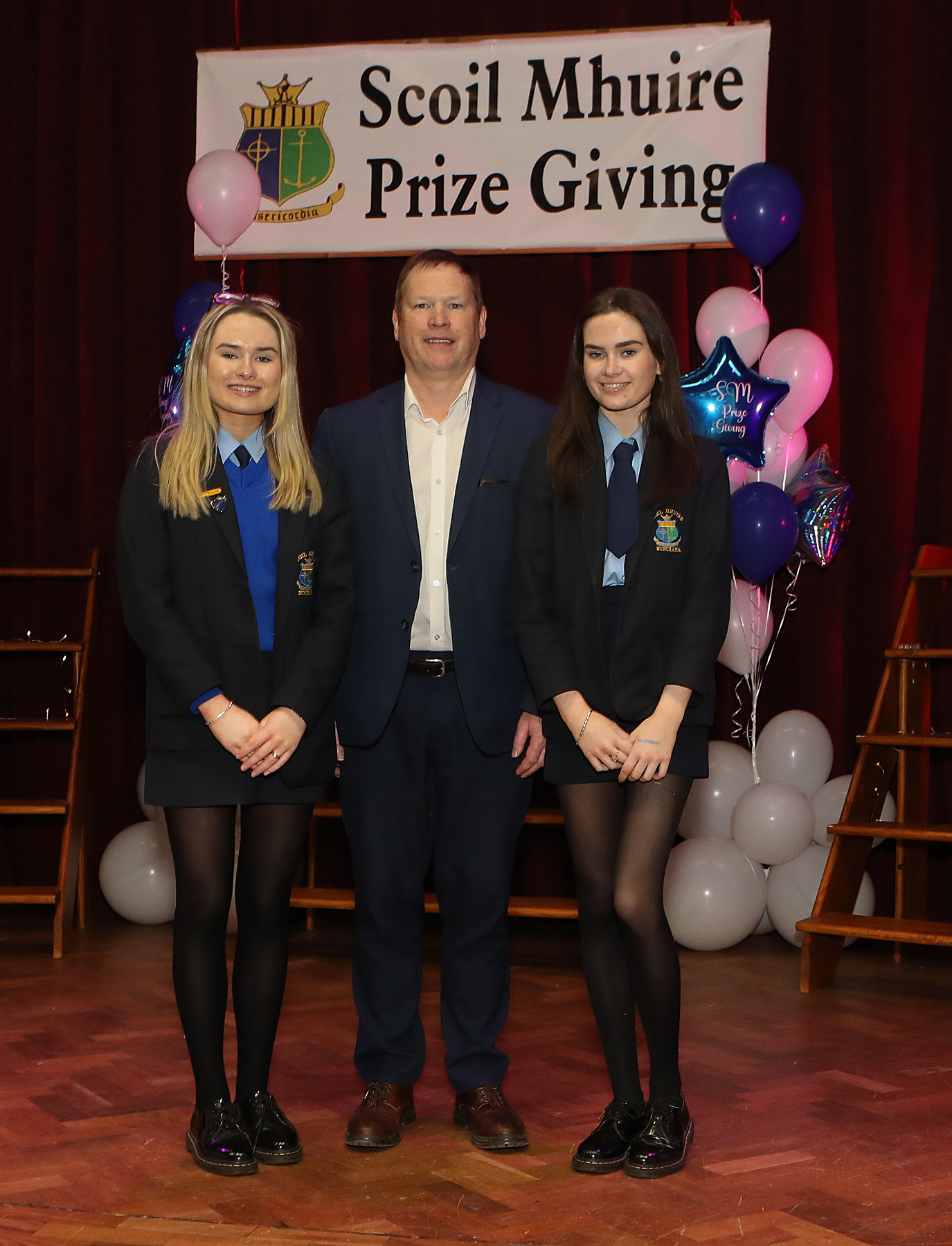 Cathal Davis, vice-principal with his twin daughters Leahrose and, on right, Lauren.