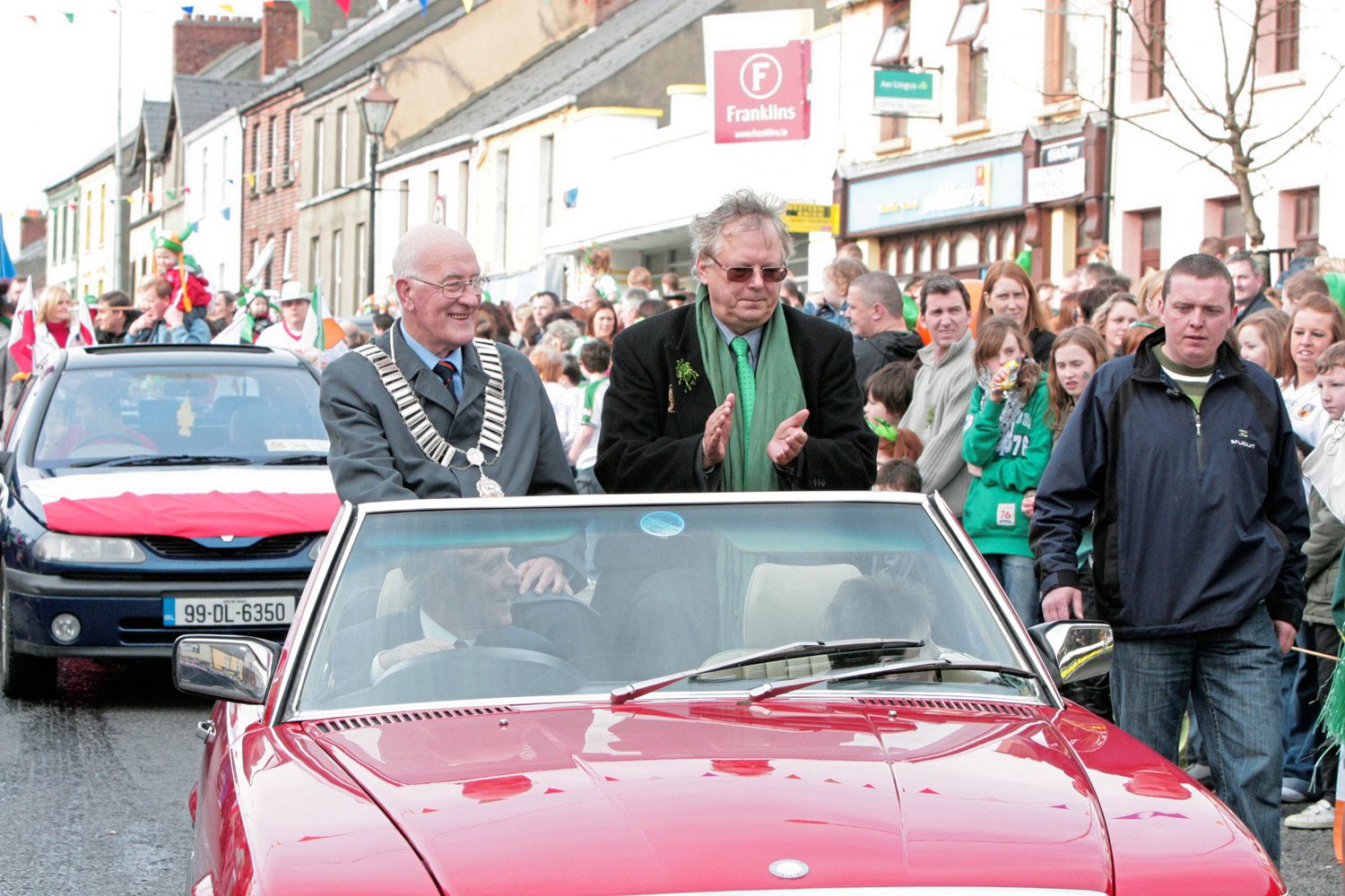 Buncrana Town Mayor Dermot McLaughlin, and Polish Ambassador Dr. Tadeusz Szumowski arriving at the viewing stand for the St Patrick's Day Parade.