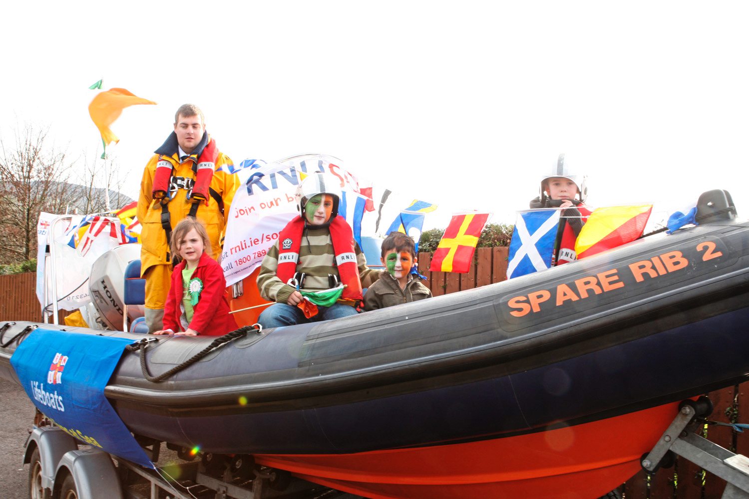 Lough Swilly RNLI member Lee Magee with Ciara Barnett, Christopher and Andrew Handoum, and Aaron Houston.