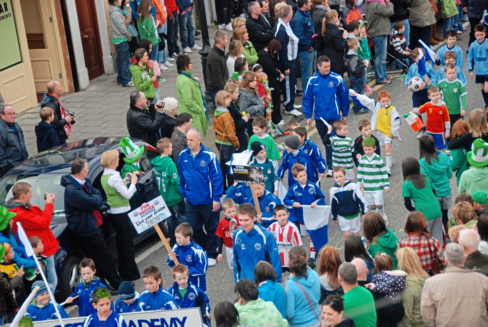 Some of the younger members of Buncrana Hearts FC taking part in the parade along Main Street.