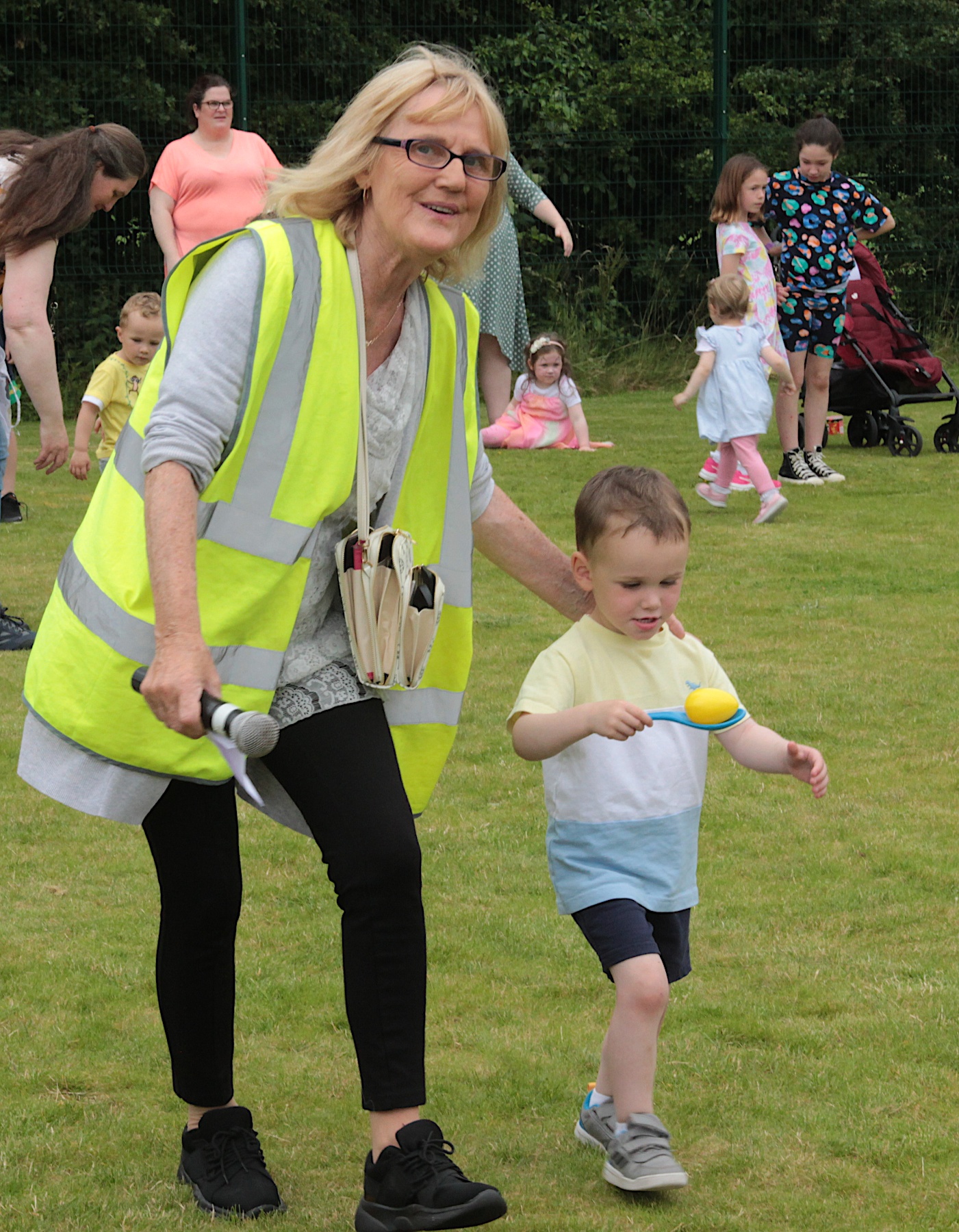 This young boy gets a helping hand in the Egg and Spoon Race.