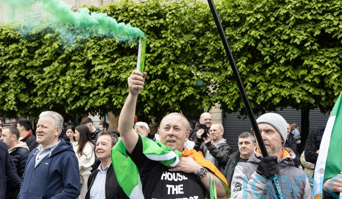 Many of the protesters held Irish flags and placards bearing messages such as “Irish Lives Matter” and “Coolock Says No”, while there were chants including “get them out”.