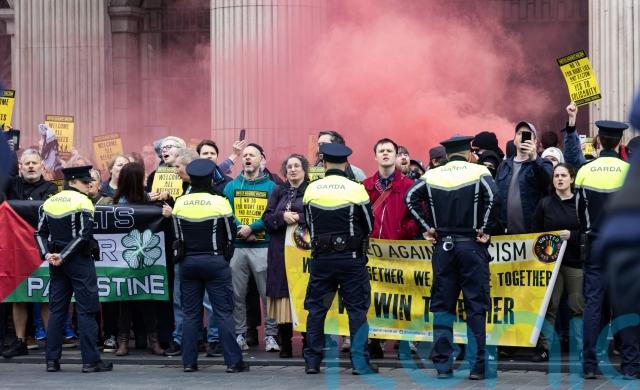 Gardai formed a line outside the GPO to ensure the anti-immigration protesters and counter-demonstrators were kept apart.