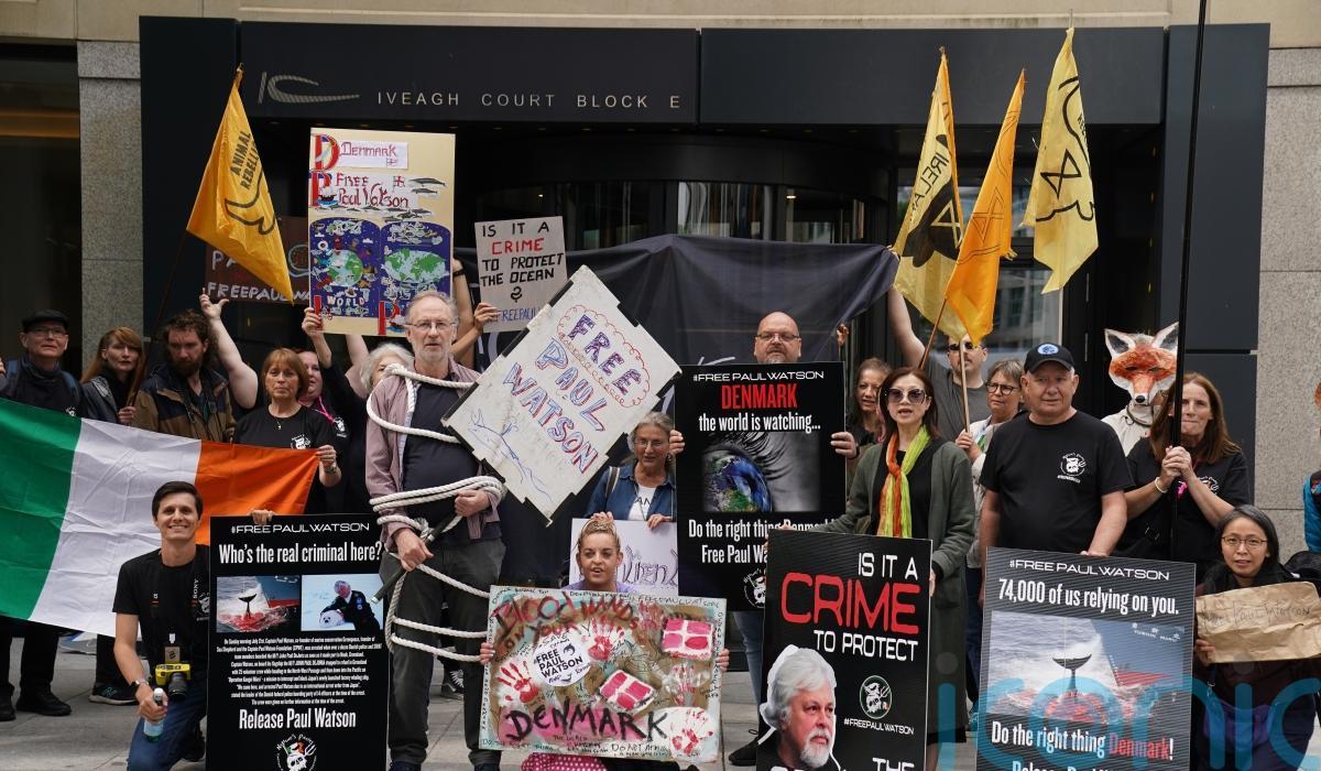 A protest has been held outside the Danish embassy in Dublin calling for the release of veteran environmental activist and anti-whaling campaigner Paul Watson.