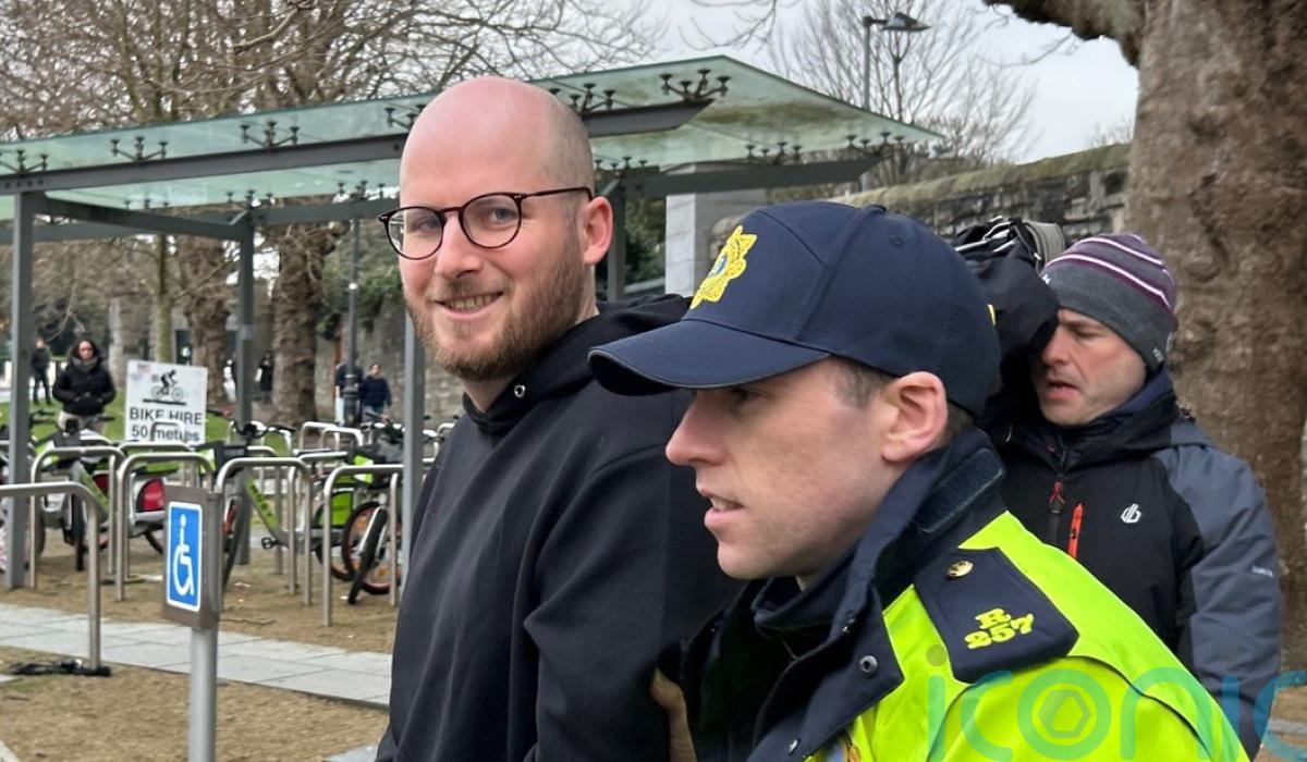 Stephane Benz, wearing glasses, a black hoodie, grey sweatpants and black trainers, was brought before a special sitting of the Criminal Courts of Justice in Dublin shortly after noon on Sunday.