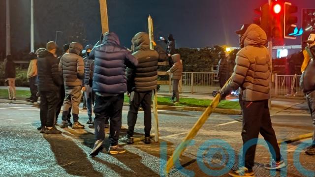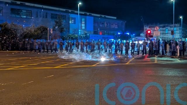 Members of the public order unit were deployed. Protesters were displaying Irish flags, chanting and throwing missiles.