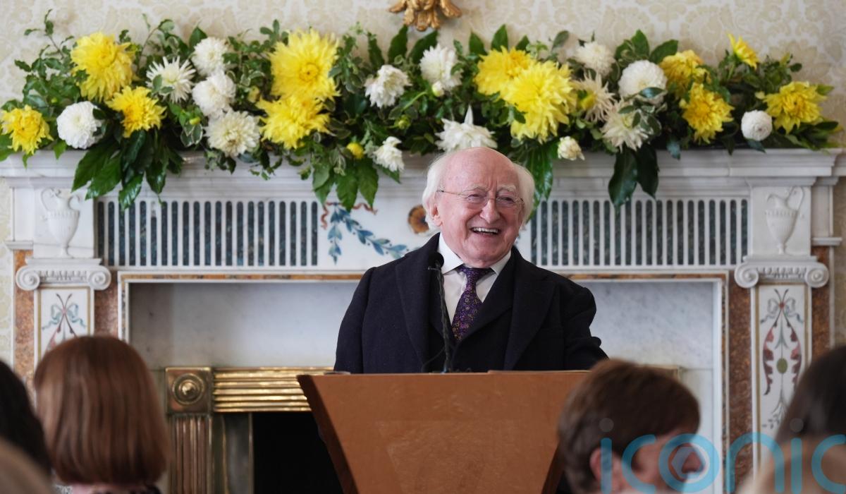 Michael D Higgins has hosted a young poet, trade unionists and a tree charity at one of his last official engagements as Irish president.