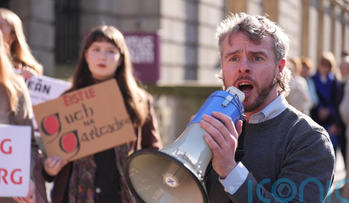 The demonstration was held by a coalition of campaign groups outside the Houses of the Oireachtas to highlight the “disproportionate” impact the shortage of affordable housing is having on Gaeltacht areas.