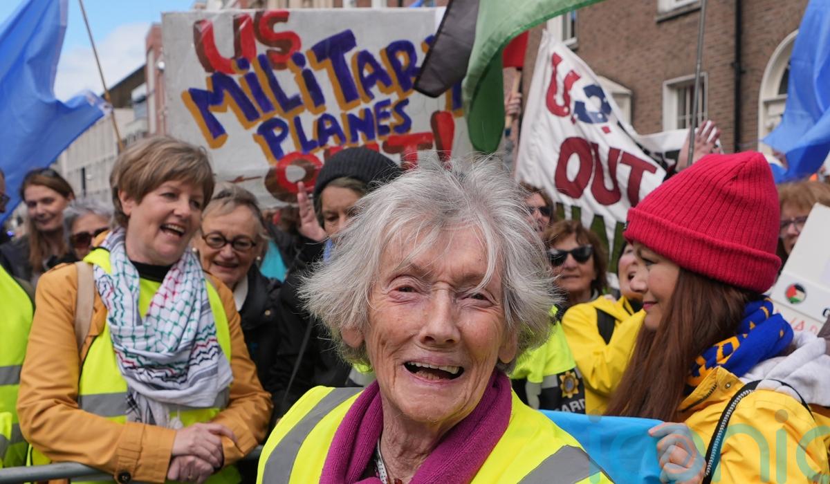 A 91-year-old woman has walked 220km to protest against the US military’s use of a Co Clare airport.