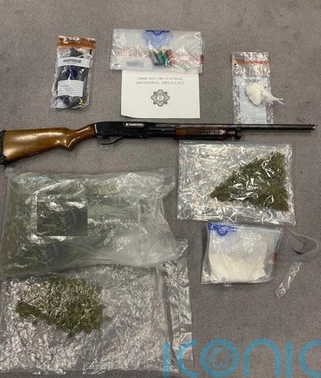 Gardai said that during the search, a loaded shotgun and ammunition was discovered along with quantities of cocaine and cannabis worth 50,000 euro – pending analysis.