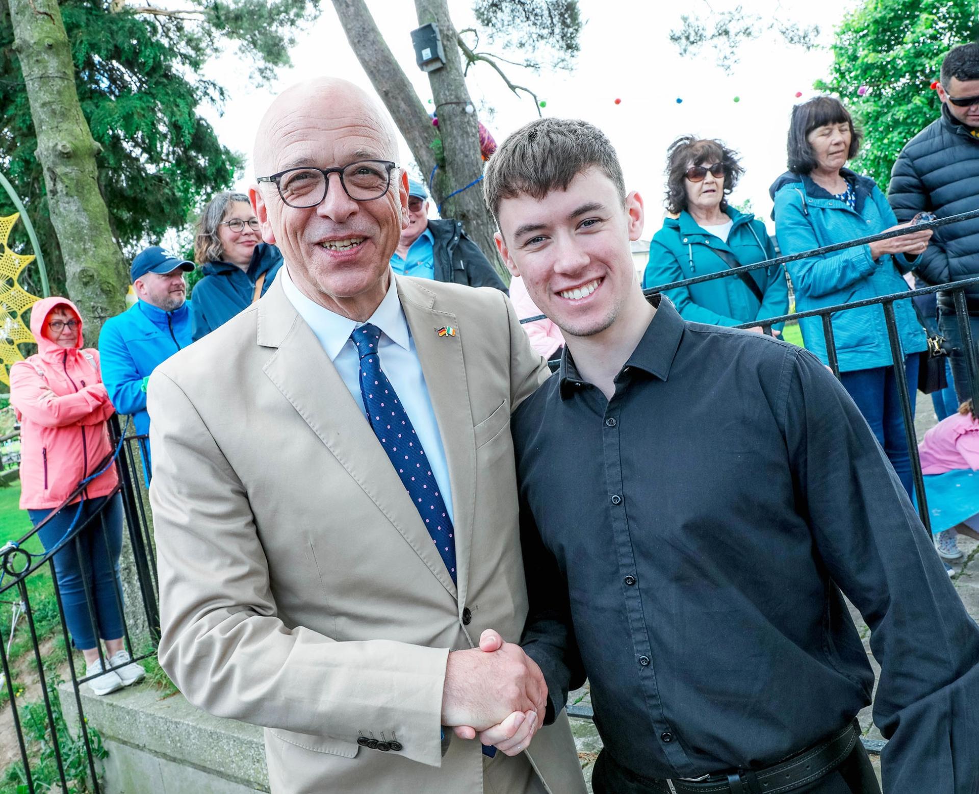 German Ambassador Cord Meier-Klodt with Caelan Power.