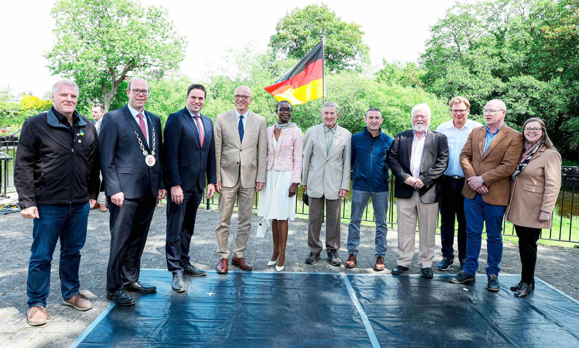 Eberhard Kemper (Chairman German committee), Bastian Haegamann (Deputy Burgermeister), Minister Martin Heydon, German Ambassador Cord Meier-Klodt, Gladys Meier- Klodt, Peter O Neill (Chairman Newbridge Twinning), John Morrissey, Bill Mahon, Arno Kiefer, Declan Browne and Karen Tyrell.
