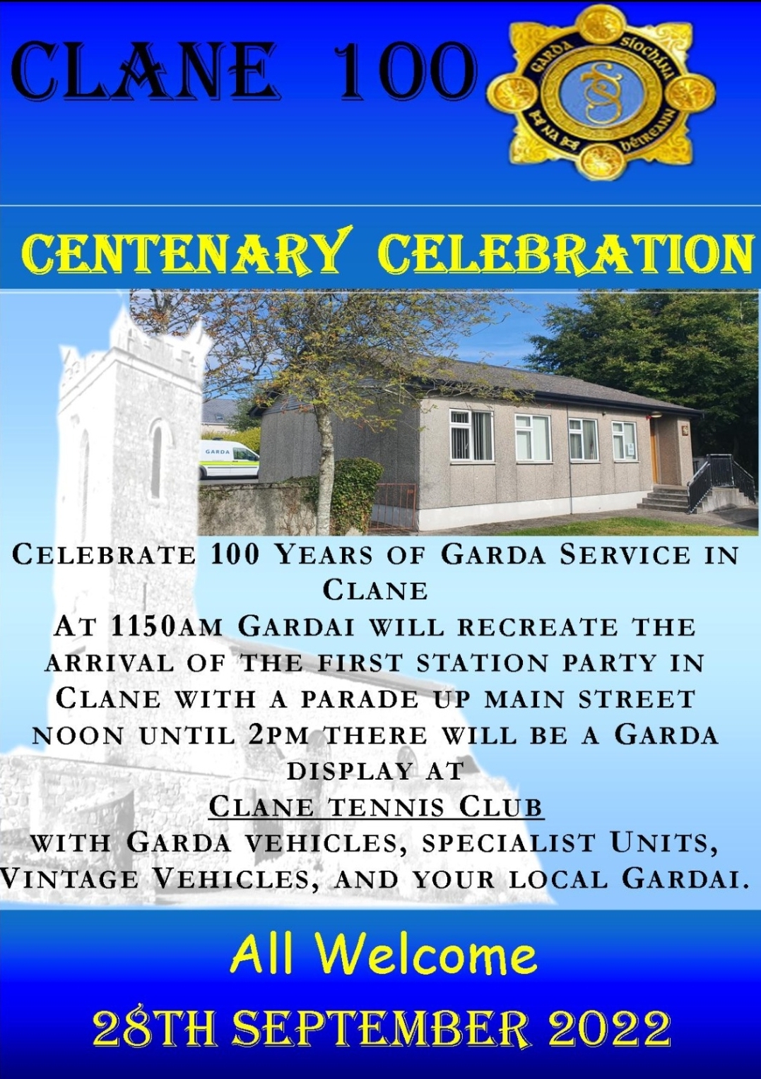 Clane Gardaí will celebrate 100 years in Clane tomorrow - Wednesday, September 28.