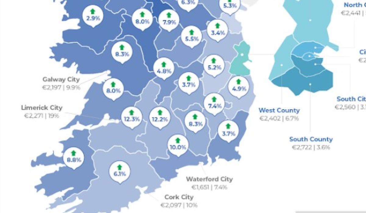The average listed rent in Kilkenny is now €1,589, up 58% from the level prevailing when the Covid-19 pandemic occurred.