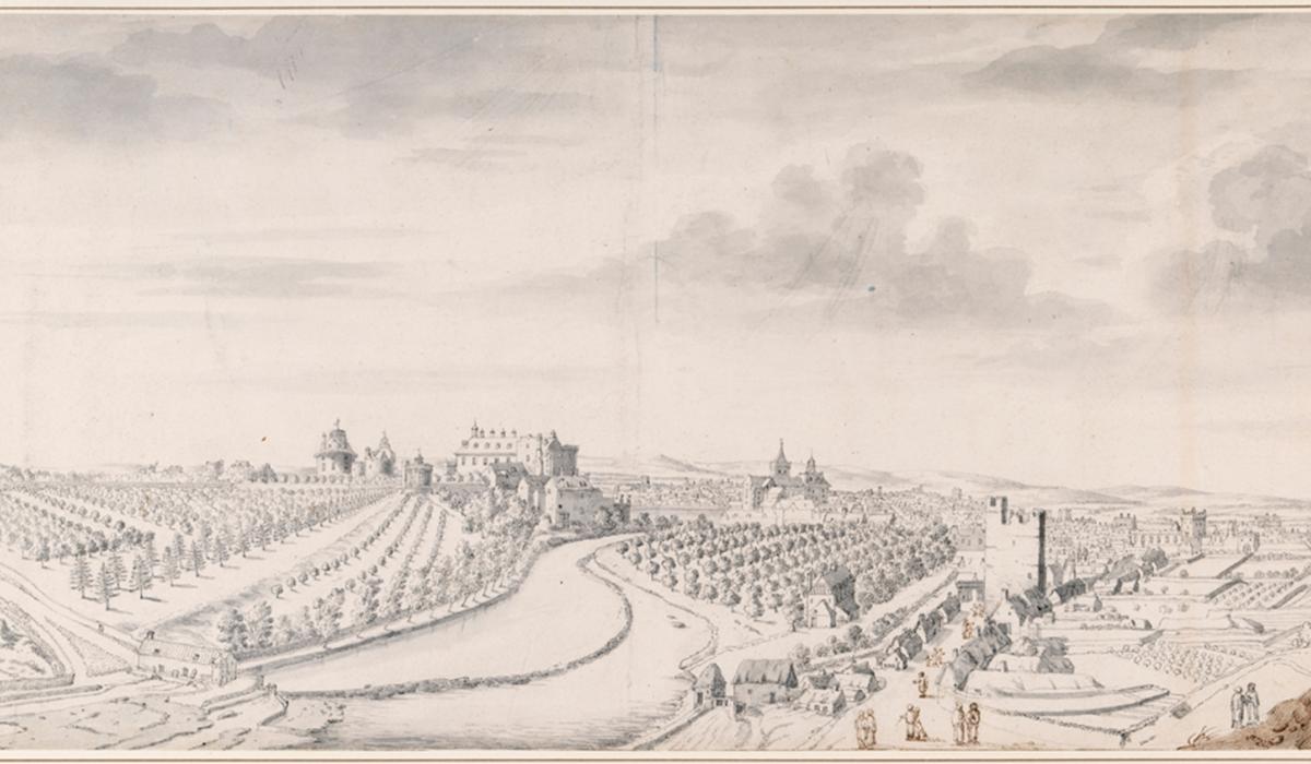 Kilkenny Castle and City from Wind Gap Hill, c.1699. By artist Francis Place