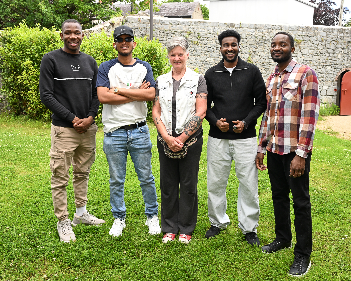 BELOW: Simom Mthethwa, Abdikhaliq Hassan Abdi, Helen Walsh, Abdikafi Hassan and Abdile Kenedy Chiniko. PICTURE Vicky Comerford