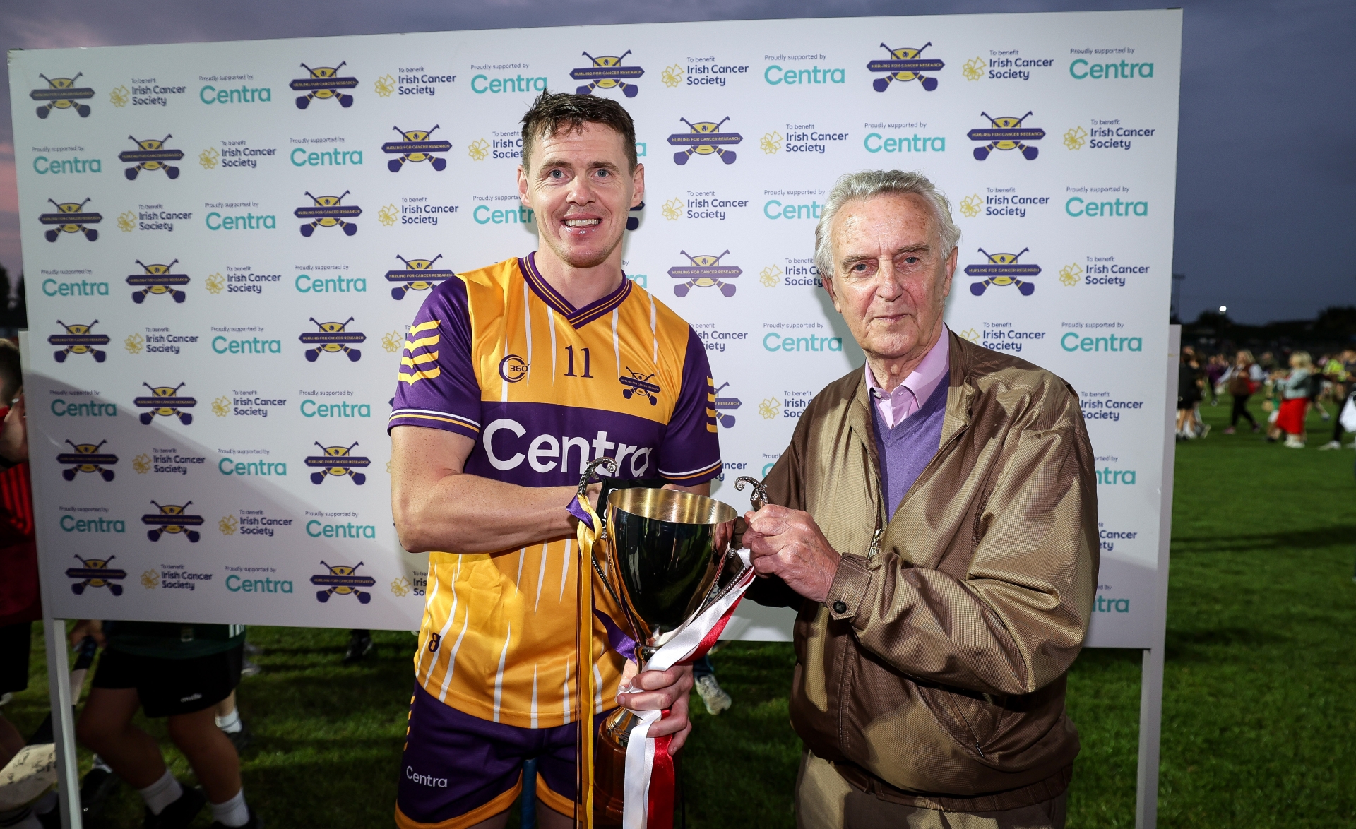 TJ Reid with the winners' trophy after his hat-trick of goals helped Jim Bolger's Stars to victory