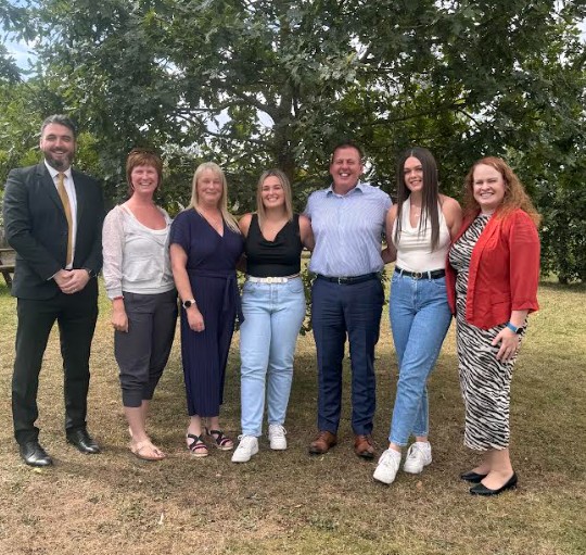 L–R: Mr Michael Hickey (Principal), Ms Kathleen Burke (Deputy Principal), Aisling Dermody (mother), Kellie (student), Peadar Dermody (father), Ava Dermody (sister), Ms Bridget Murphy (Deputy Principal)