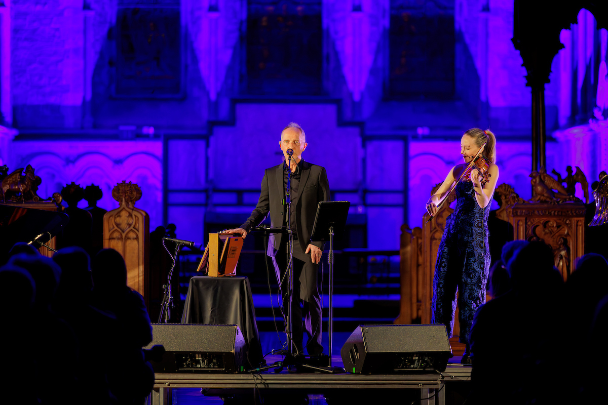 Iarla Ó Lionáird and Aoife Ní Bhriain in the atmospheric cathedral backdrop
