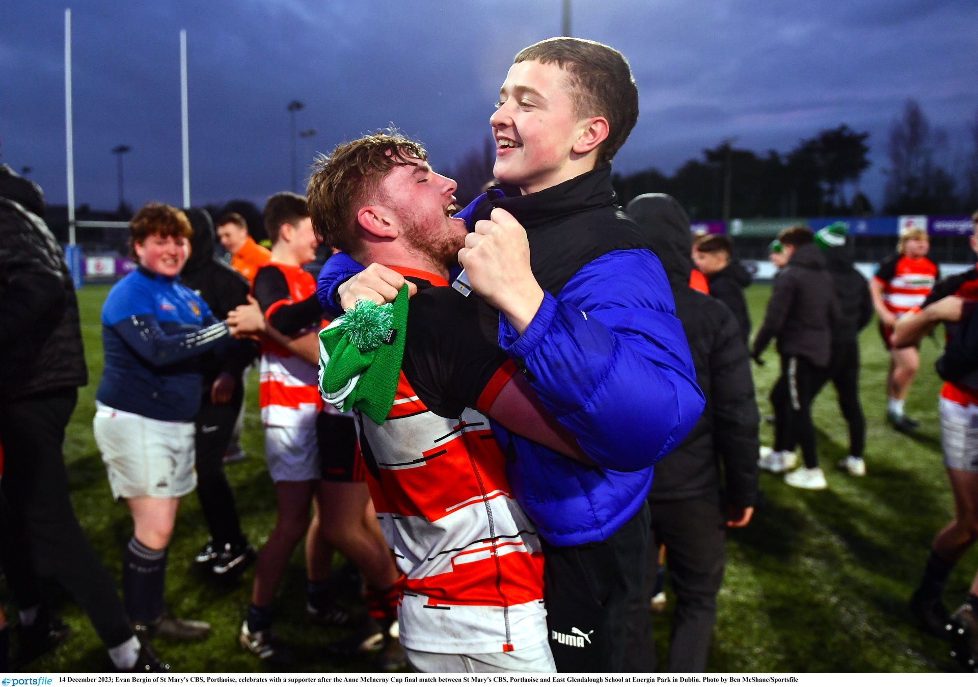 St Mary's CBS in Portlaoise celebrated double delight Leinster Rugby in the Bank of Ireland Leinster Schools Senior and Junior Development Cup and Shield Finals in the run-up to Christmas.
