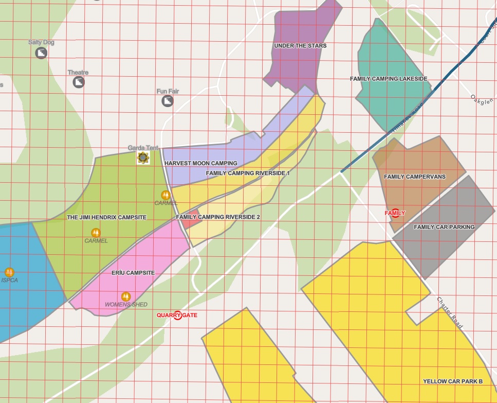 It also includes locations of bus and taxi facilities, Garda facilities, and all the stages, entertainment tents and campsites.