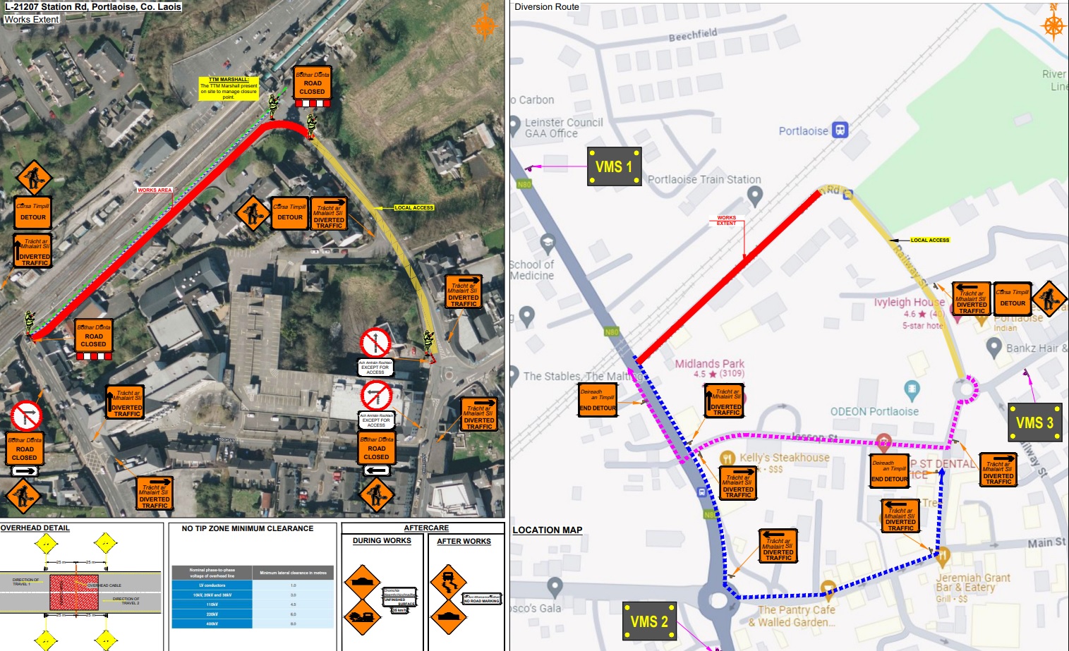 Station Road will be closed off from the Junction with N80 Coote Street, to Portlaoise Train Station, each day from 9.20am until 8pm.