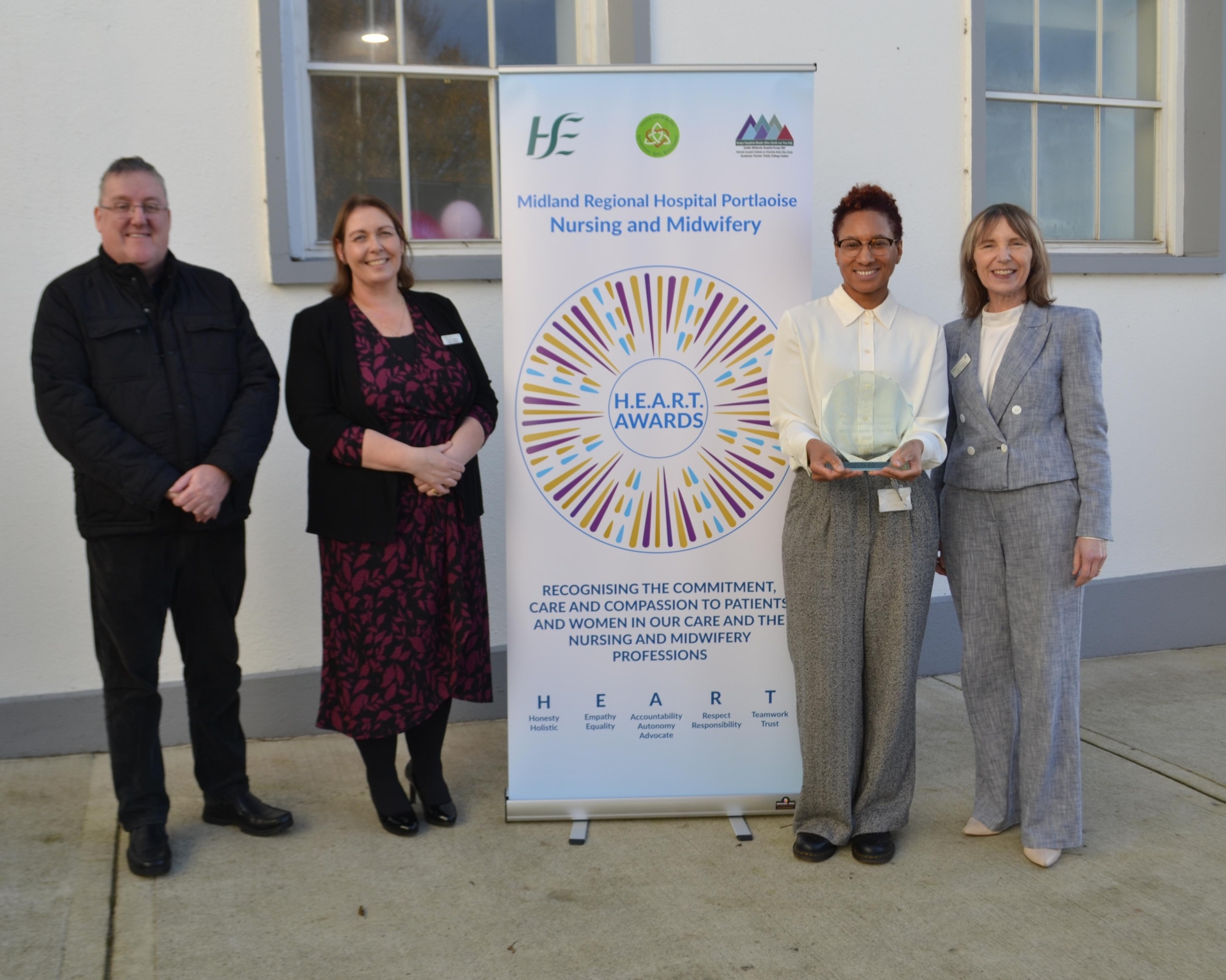 Midwife Leader of the Year - Melanie Adams, Assistant Director of Midwifery with John Joyce, General Manager, Olivia Lafferty, Director of Nursing and Ita Kinsella, Director of Midwifery, MRHP.
