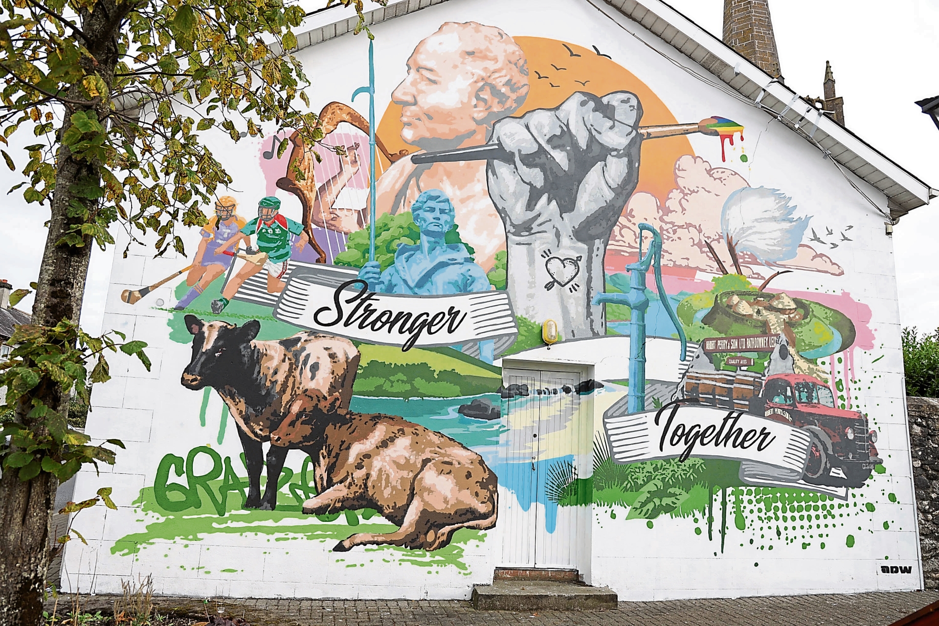 It was commissioned by the Laois Arts Office in consultation with members of the Rathdowney community via The Walls Project, a creative arts agency that specialises in the delivery of large scale public and private commissioned artwork across Ireland and Europe.