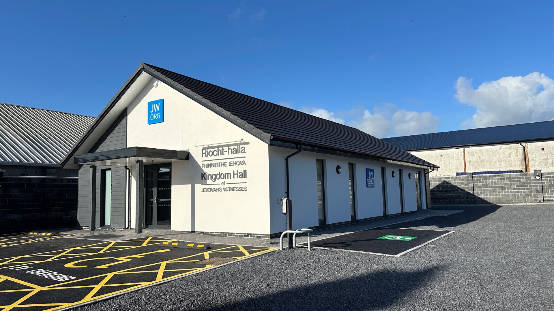 Over 400 Jehovah’s Witnesses from the local area, around Ireland and the UK volunteered over five months to help build the Kingdom Hall. The new building consists of an auditorium with a capacity of 90 people and some facilities.