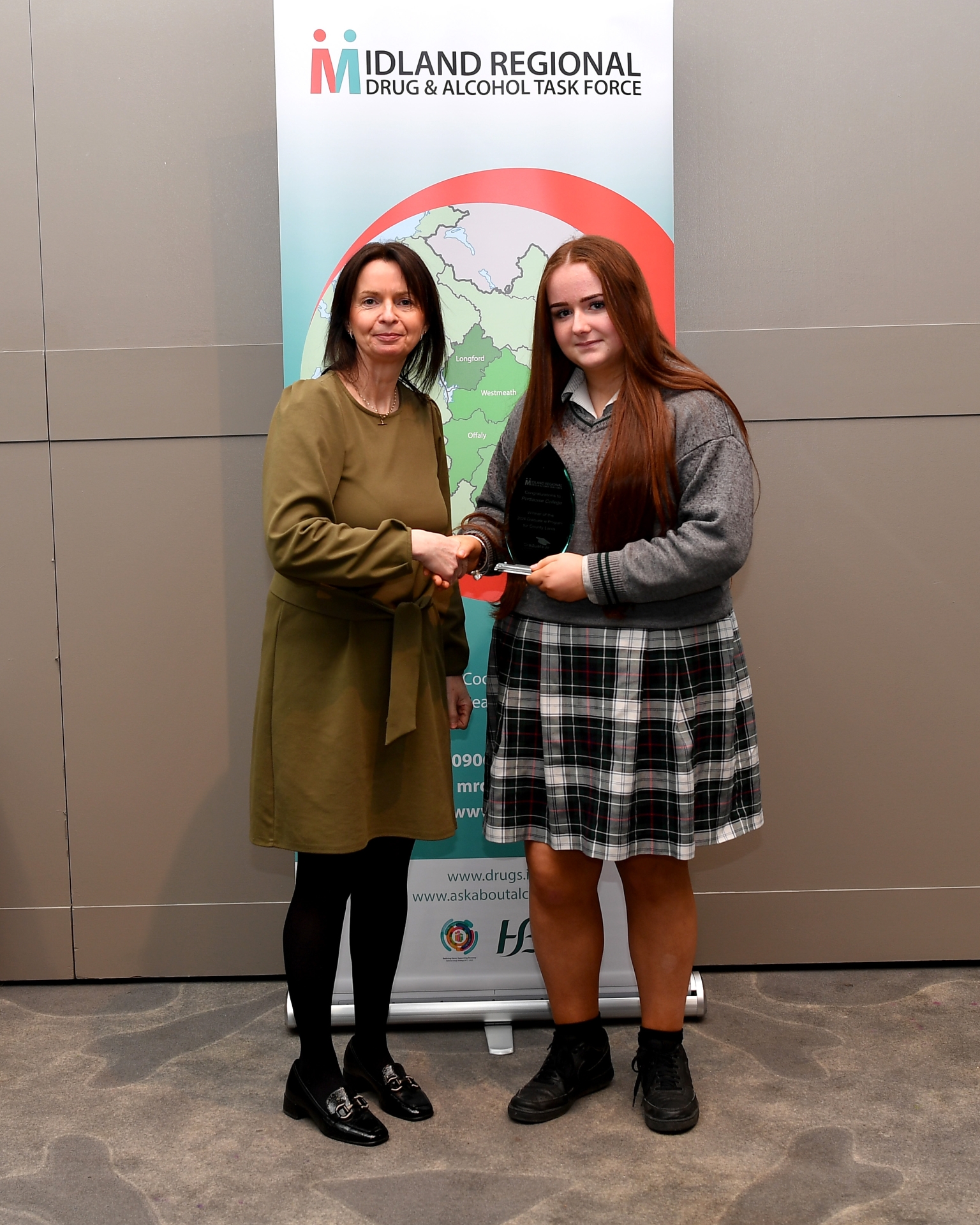 Photo Laois student & MRDATF Co-ordinator (L-R Antoinette Kinsella, Co-ordinator, Midland Regional Drug & Alcohol Task Force & Clodagh Fitzpatrick, student Portlaoise College)