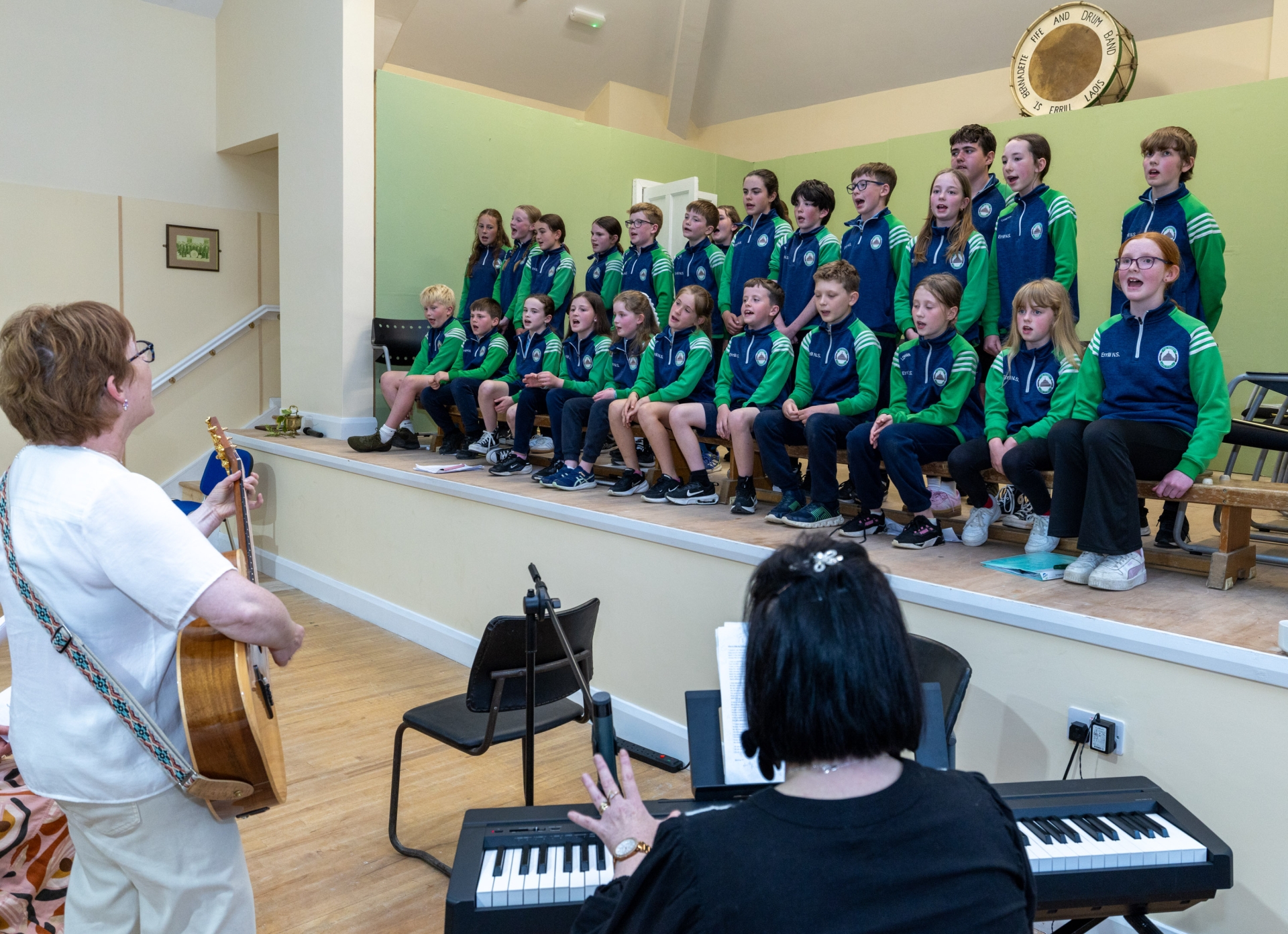 The children of St. Colmcille's NS, Errill debuted their new song at the newly refurbished St Bernadette's Hall.