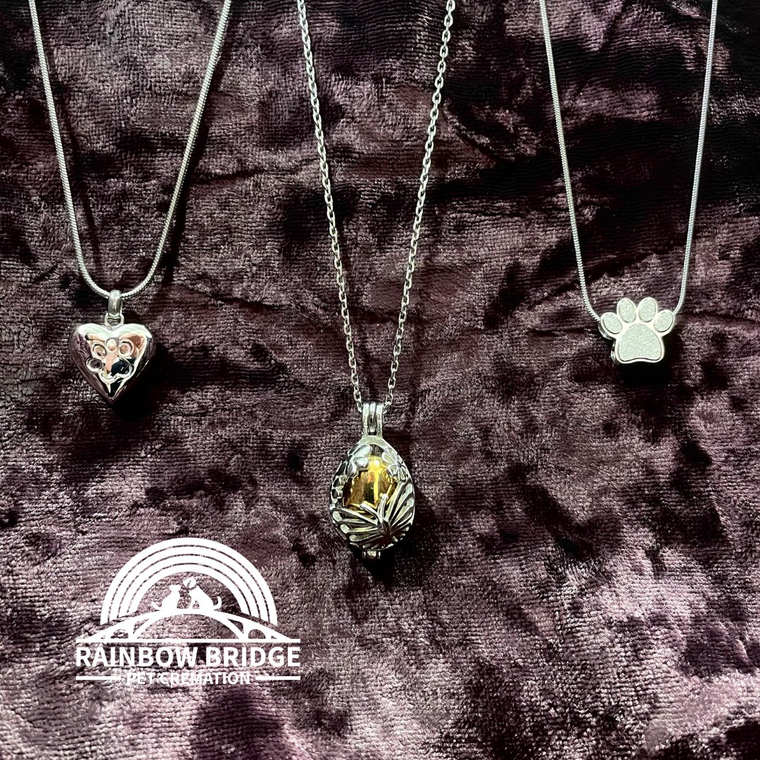 There is a variety of jewellery that pet owners can opt for their pet's ashes to be stored in, along with keychains, photo boxes and even a statue.