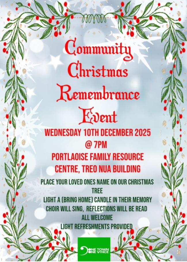 The Portlaoise Family Resource Centre has extended an invitation to people across Laois to join them for a Community Christmas Remembrance event on Wednesday, 10 December.