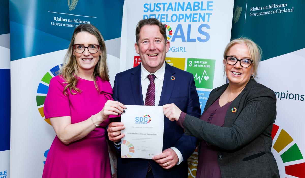 Work to advance Ireland’s national sustainability objectives by the Laois and Offaly Education and Training Board (LOETB) have been recognised with the awarding of Sustainable Development Goals (SDG) Champion status.