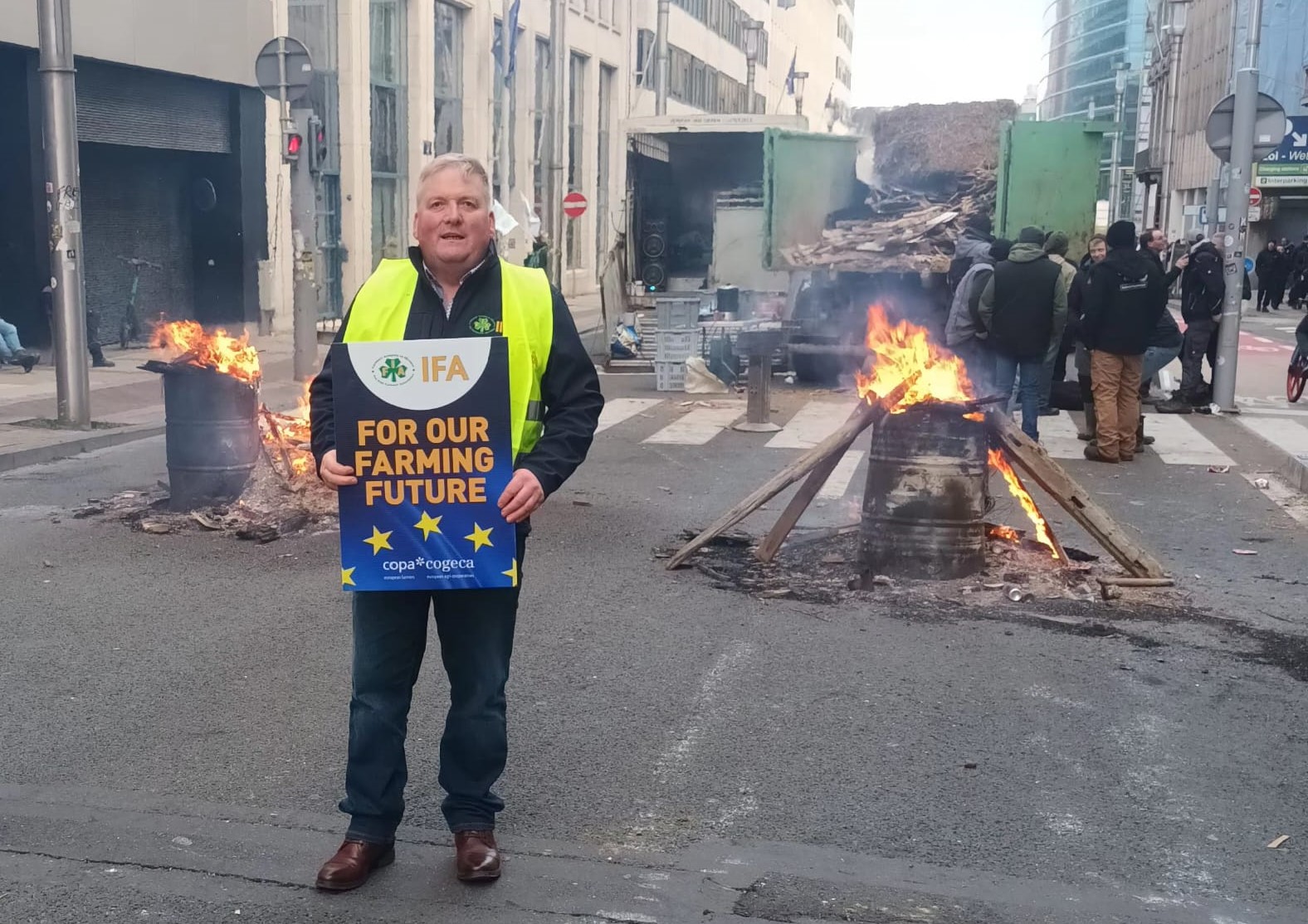 Borris-in-Ossory man and IFA National Beef Committee Chairman Declan Hanrahan at a protest by farmers from across Europe in Brussels before Christmas. Pic: IFA