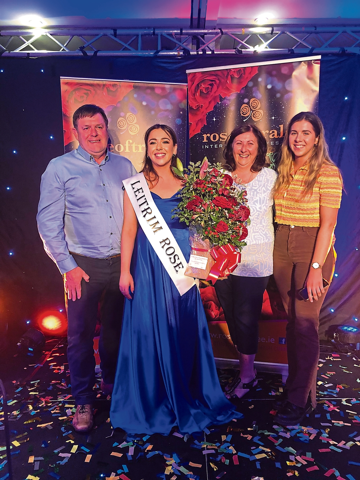 2022 Leitrim Rose of Tralee, Saoirse Gibbons is pictured with her parents Bart and Jacqui and her sister Eimear after she was crowned the winner at the Leitrim Selection night in June,