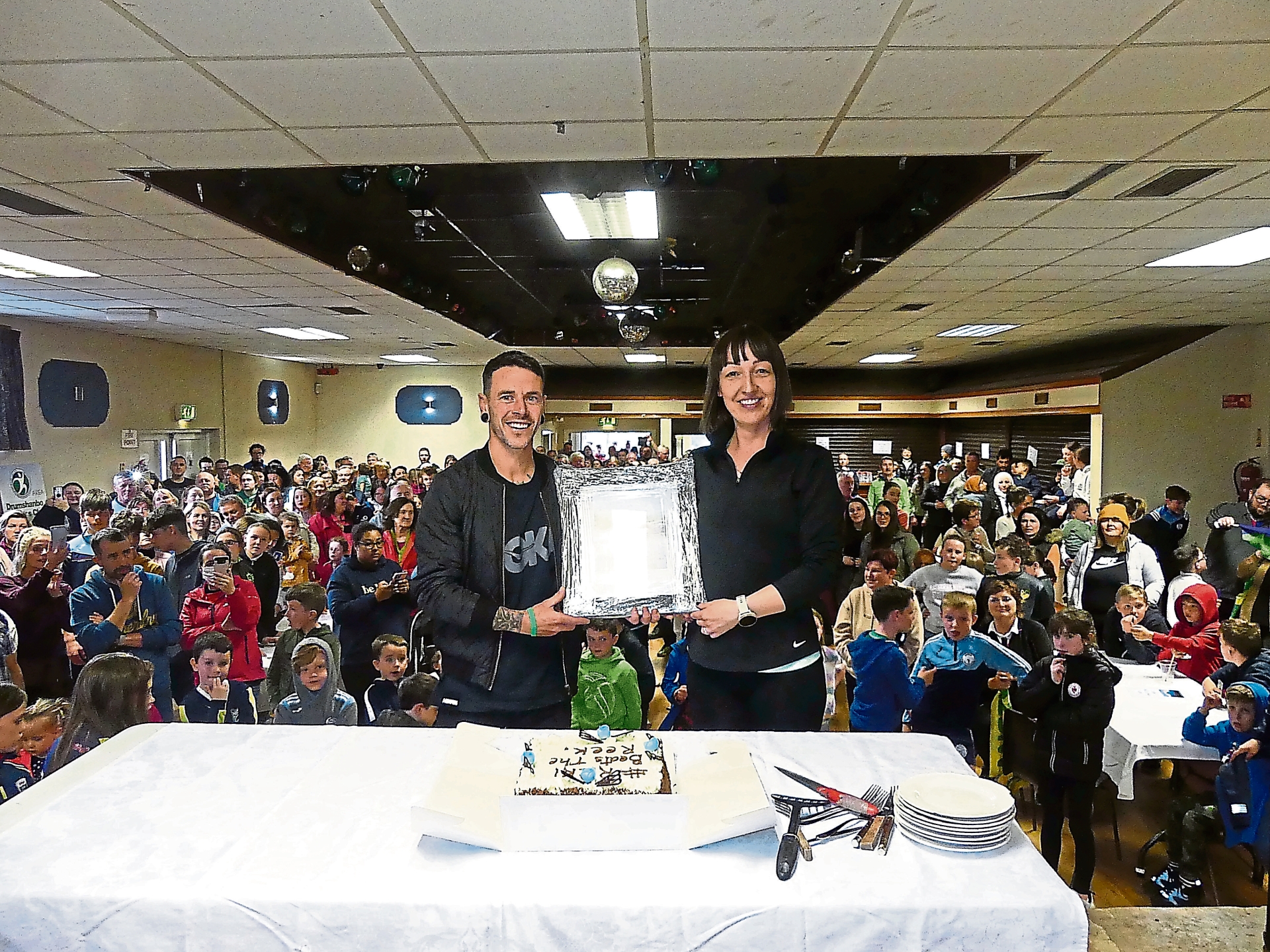Lisa King makes a presentation to world record breaker Ricki Wynne on behalf of Drumshanbo Athletic Club at a reception in The Mayflower, Drumshanbo Picture: Noreen Gaffney