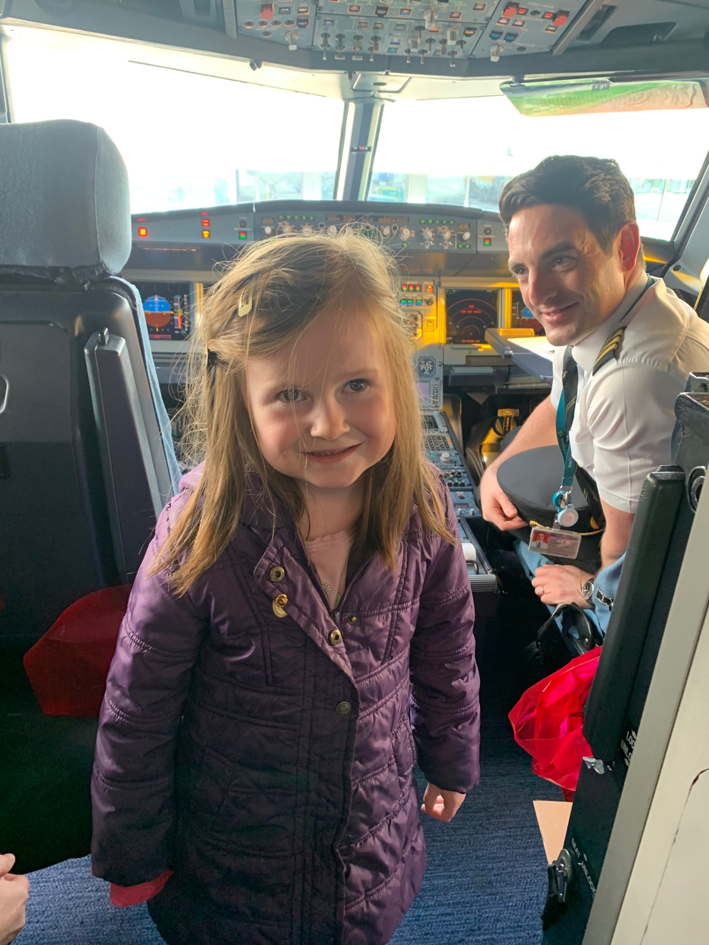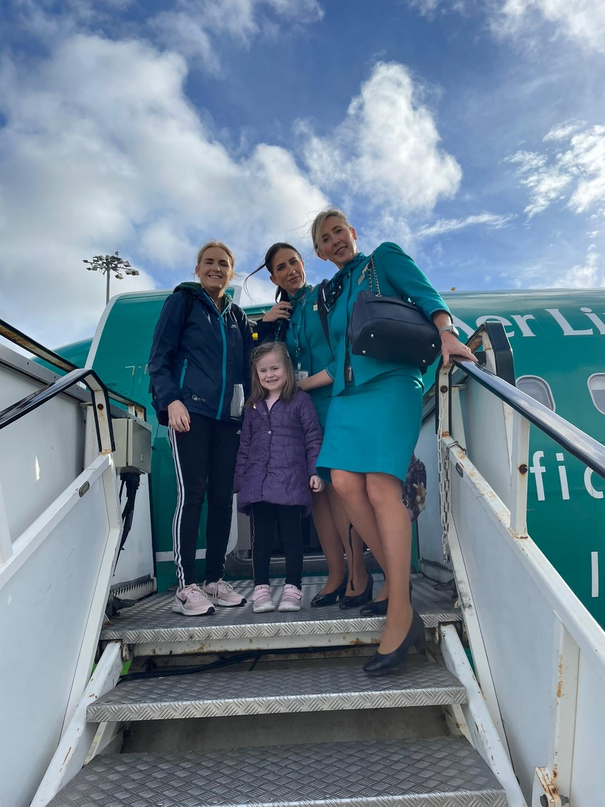 Rachel McGovern with AerLingus staff flying to Birmingham for cancer treatment
