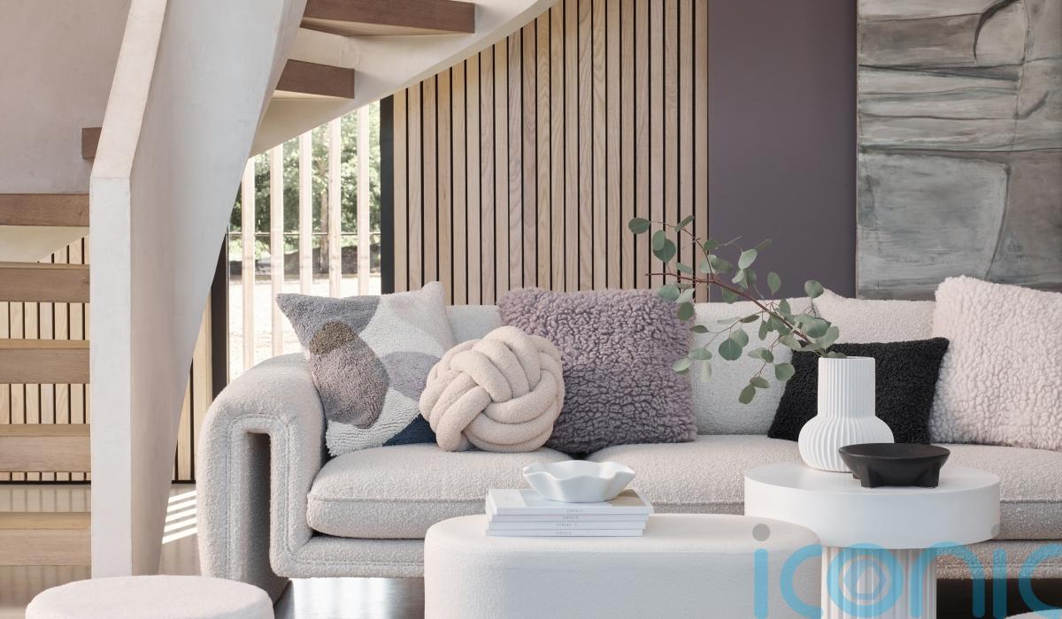 7. George Tufted Pebble Cushion, £11, (left), Natural Teddy Knot Shaped 3D Cushion, £15, Lilac Chunky Boucle Cushion, £12, (centre), Natural, £12 (to right), rest of items from a selection, Direct.asda