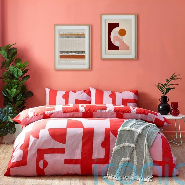 9. SO’HOME Red and Pink Abstract Duvet Cover & Pillowcase Set, King, £35, SO’HOME Rainbow Design Cotton Tufted Throw, Grey, £30, La Redoute