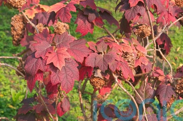 The oak-leaved hydrangea is so named because of its large, impressive leaves which are shaped like those of an oak and turn to bronze-crimson in autumn before they fall. This deciduous shrub, which has a loose, open habit, produces large white conical flowerheads at the end of the branches in late summer which fade to pink. It likes a damp site in semi shade in moist soil enriched with organic matter.