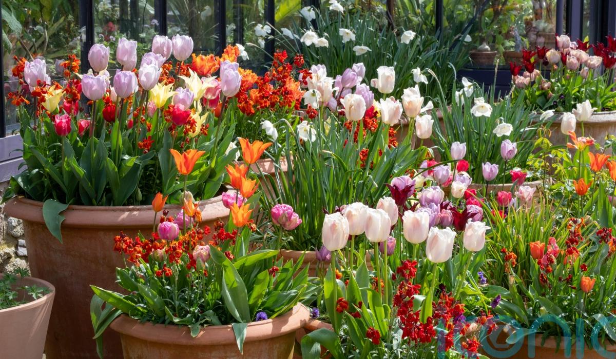 Every spring, gardening expert and author Sarah Raven relishes the fruits of her labours as her container tulips bring a riot of colour to her garden at Perch Hill Farm, East Sussex, where visitors can see the glorious combinations of bulbs during open days from mid-April.