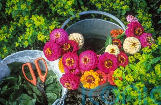 Cut your flowers first thing in the morning or last thing at night because the plants photosynthesise and transpire through the day, becoming water-depleted, particularly on a hot day when the cells will go quite floppy.