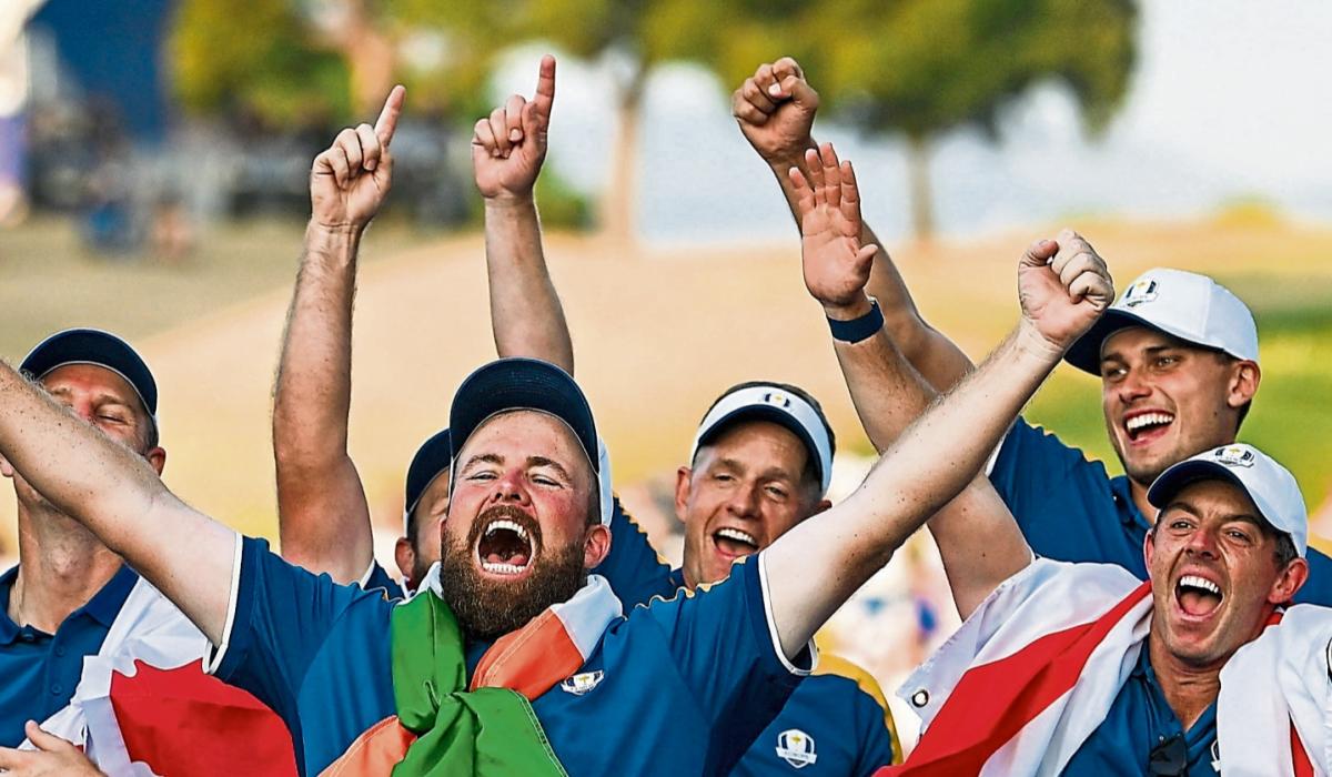 Europe players, including Shane Lowry and Rory McIlroy celebrate with the 2025 Ryder Cup success at Bethpage State Park Golf Course, New York I PICTURE: Sportsfile