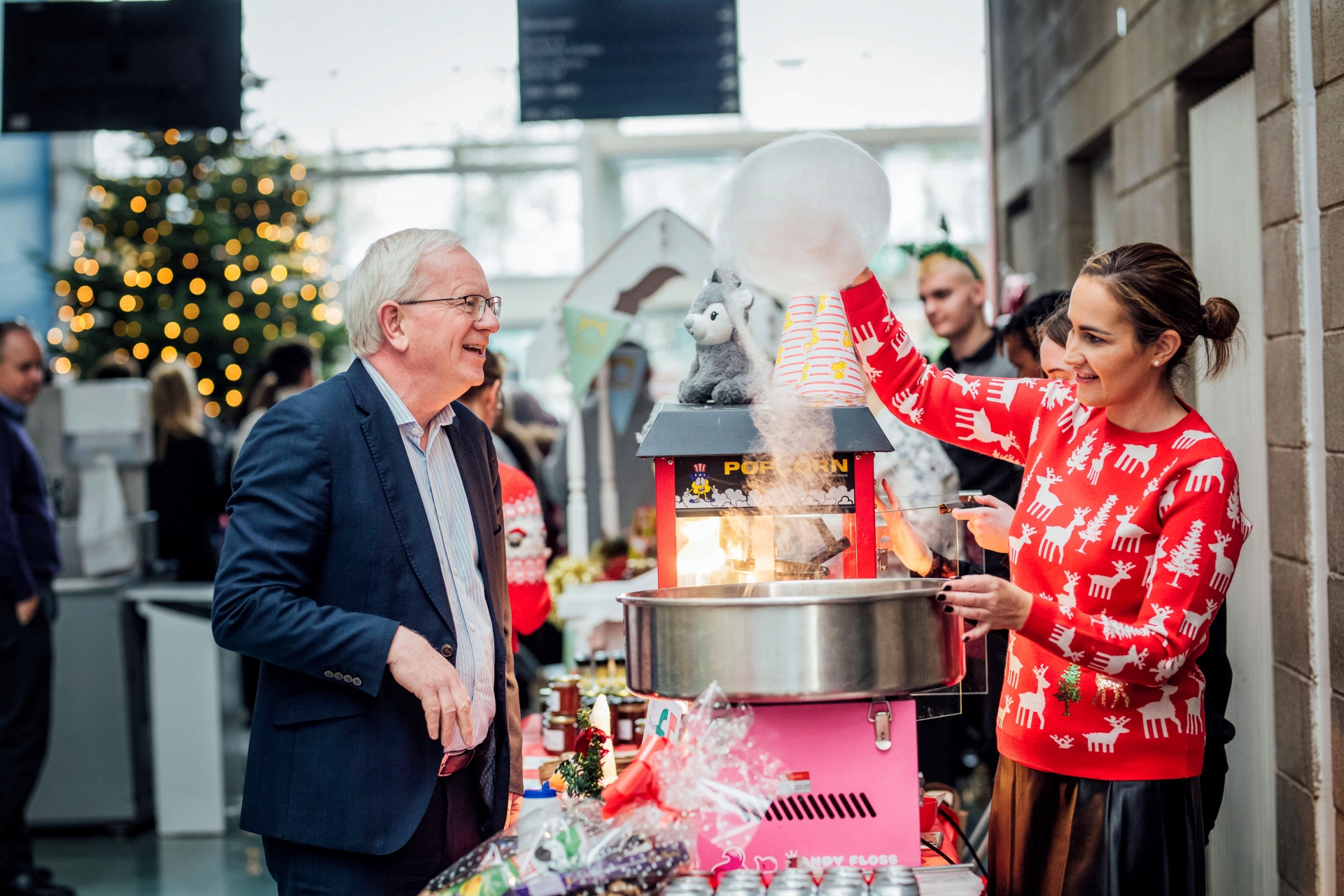 Tomas McGrath from Thomond Primary School is given free candy floss for singing Christmas carols from Linda Duggan at her stall | PICTURE: Brian Arthur